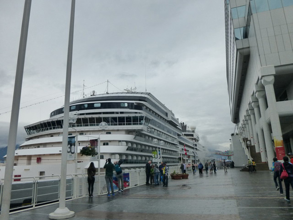 大きな客船が停泊する港の回りに「スタンレー・パーク」、「ウォーター・フロント駅」、「オリンピックの聖火台」等が並び、とても賑わっています。昼食は「水上飛行機」の停泊所が見えるおしゃれなレストラン「カクタス・クラブ」で食べました。