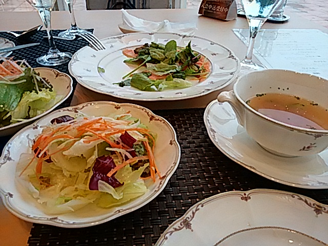 メインのパエリアの前にスープやサラダ